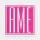 Serviette En Papier 3 Initiales Monogramme | Blanc sur rose chaud