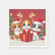 L'image est une illustration numérique avec trois chatons habillés en tenue de Noël, placés près d'une boîte cadeau rouge. Chaque chaton porte un casquette rouge. Plus précisément, le chaton au milieu est également orné de bois de rennes. La représentation dégage une atmosphère chaleureuse et joyeuse, qui correspond à la période des fêtes. L'ambiance festive est encore accentuée par un sapin de Noël présent dans l'arrière - plan.