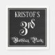 Ce luxueux et opulent design de serviette en papier sur le thème de l'anniversaire comporte un nom personnalisable et le message "3e fête d'anniversaire". Le grand numéro "3ème" et les mots "fête d'anniversaire" sont en texte orné de script, et l'arrière - plan est coloré en noir par défaut (bien qu'il puisse être customisé). Des serviettes en papier élégantes et opulentes comme celle-ci pourraient être utilisées lors d’une fête d’anniversaire ou d’une fête célébrant le 3e anniversaire de quelqu’un. [~Z0000563]