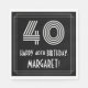 Ce design de serviette en papier à thème inspiré du style des années 1920/1930 et vintage d'aspect d'anniversaire est décoré d'un grand modèle Art déco inspiré du numéro "40", du message "HAPPY 40th BIRTHDAY", un nom personnalisé, et d'un motif frontalier composé de lignes. Des serviettes en papier comme celle-ci, amusantes et modifiables, pourraient être utilisées lors d’une célébration d’anniversaire en l’honneur du quarantième anniversaire de quelqu’un. [~Z0000395]