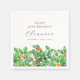 Décor de table parfait pour une fête d'anniversaire de décembre. Holly est la fleur de naissance pour ce mois-là. Il forme une jolie bordure de fond d'aquarelle sur cette serviette personnalisée festive. Le nom, l'âge et la date de naissance du célébrant d'anniversaire sont placés au-dessus de celui-ci à l'aide d'élégantes calligraphies et typographies. Tout le texte est modifiable.
