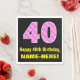 Cette conception amusante et joyeuse de serviette en papier sur le thème de l'anniversaire comporte un grand nombre de "40" avec un motif rayé rose clair et rose foncé contenant des formes cardiaques. Il comporte également le message de voeux d'anniversaire "Joyeux 40e anniversaire", et un nom personnalisé. Des serviettes en papier comme celle-ci pourraient être agréables à avoir lors d’une fête organisée pour célébrer le 40e anniversaire de quelqu’un. Cela pourrait aussi être un choix amusant pour quelqu'un qui a un anniversaire qui tombe le 14 février (Saint-Valentin), en raison de ses symboles et couleurs de coeur aimés. [~Z0000436]