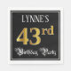 This elegant and opulent birthday-themed paper napkin design features a customizable name and the message “43rd Birthday Party”. The large number “43rd” has an imitation/faux gold-inspired coloring pattern, and the words “Birthday Party” are in ornate script-style text. The background is colored black by default (although it can be customized). Luxurious, fancy paper napkins like this might be useful at a birthday party/celebration being held in celebration of somebody’s 43rd birthday. [~Z0000565]