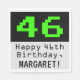 Ce design de serviette en papier à thème geek et nerdy d'anniversaire est doté d'un grand classique vert de jeu d'ordinateur numéro "46" sur un arrière - plan de couleur noire. Il contient également le message de voeux d'anniversaire "Joyeux 46e anniversaire", ainsi qu'un nom qui peut être modifié. Des serviettes en papier amusantes comme celle-ci pourraient être utilisées lors d'une fête organisée pour célébrer le quarante-sixième anniversaire d'un scientifique, d'un historien de l'informatique ou d'une personne qui aime les jeux 8 bits. [~Z0000404]