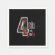 4 juillet design de serviette de feu d'artifice lumineux. Feu d'artifice coloré à l'intérieur du numéro 4 sur un arrière - plan noir audacieux. Juillet est écrit en rouge patriotique, blanc et bleu. Fourniture parfaite de fête du jour de l'Indépendance.