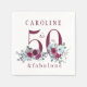 Elégante feminine 50 et fabuleuse fête d'anniversaire serviette en papier personnalisée avec aquarelle rouge bordeaux et bleu clair bouquets rose de pivoine et un script de typographie moderne tendance.