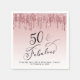 Élégante et chic serviettes personnalisées à l'occasion du 50e anniversaire avec "50 & Fabulous" écrites dans un script élégant contre un arrière - plan rose et sombre, avec une fausse parties scintillant en or rose et rose qui coule du haut. Personnalisez avec son nom et la date du parti.