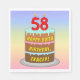 Cette serviette en papier d'anniversaire joyeuse et colorée présente une représentation de type dessin animé d'un gâteau d'anniversaire à trois niveaux avec des bougies en forme de chiffres sur le dessus montrant le numéro "58", avec le message "HAPPY 58TH BIRTHDAY," et un nom de destinataire personnalisé. L'arrière - plan a un motif multicolore pastel arc-en-ciel inspiré du spectre dégradé. Des serviettes en papier sur le thème de l’anniversaire comme celles-ci pourraient être utilisées lors d’une fête d’anniversaire célébrant le cinquante-huitième anniversaire de quelqu’un. [~Z0000623]