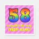 Ce joyeux et joyeux design de serviette en papier sur le thème du 58ème anniversaire comprend un grand nombre de "58" ayant un motif coloré inspiré par l'apparence d'un spectre arc-en-ciel. Il comporte également le message "Joyeux 58ème anniversaire", suivi d'un nom personnalisé. L'arrière - plan dispose d'un motif amusant de rayures rose pâle et rose foncé contenant des coeurs roses aimés. Des serviettes en papier sur le thème de l’anniversaire comme celle-ci pourraient être amusantes à utiliser lors d’une fête organisée pour célébrer le cinquantenaire de quelqu’un. [~Z0000417]