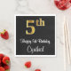 Cette conception élégante, sophistiquée et élégante de serviette en papier à thème d'anniversaire comporte un grand numéro ordinal "5th" avec un motif dégradé faux/imitation or, ainsi que le message de voeux d'anniversaire "Happy 5th Birthday," et un nom personnalisé dans une police de style script. L'arrière - plan est noir de couleur. D'élégantes serviettes en papier comme celle-ci peuvent être amusantes à utiliser lors d'une fête organisée pour quelqu'un qui célèbre son 5e anniversaire. [~Z0000516]