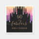 Une serviette tendance et glamour pour 60e anniversaire. Un arrière - plan noir classique décoré avec des gouttes de parties scintillant irrégulière de couleur arc-en-ciel, la peinture goutte à goutte dans l'or violet, rose et rose. Avec le texte : 60 et fabuleux. Personnalisez et ajoutez un nom. Texte de couleur dorée. Le mot Fabulous est écrit avec un script de style à la main moderne avec des swashes.