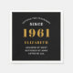 Une serviette en papier classique personnalisée pour cette célébration d'anniversaire pour une femme spéciale née en 1961 et ayant 60 ans. Ajoutez le nom à ce design vintage de style rétro noir, blanc et or pour un cadeau personnalisé de 60ème anniversaire. Modifiez facilement le nom et l'année avec le modèle fourni. Un merveilleux cadeau d'anniversaire personnalisé. Plus de cadeaux et de fournitures de fête pour cette 60e fête disponibles dans le magasin.