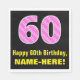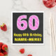 Cette conception amusante et joyeuse de serviette en papier sur le thème de l'anniversaire comporte un grand nombre de "60" avec un motif rayé contenant des formes cardiaques coloré rose clair et rose foncé. Il comporte également le message de voeux d'anniversaire "Joyeux 60e anniversaire", et un nom personnalisé. Des serviettes en papier comme celle-ci pourraient être agréables à avoir lors d’une fête en l’honneur du 60e anniversaire de quelqu’un. Cela pourrait aussi être un choix amusant pour quelqu'un qui a un anniversaire qui tombe le jour de la Saint-Valentin (14 février), en raison de ses symboles et couleurs de coeur aimés. [~Z0000436]
