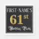 This ornate and élégant birthday théed paper napkin design features a customizable name and the message "61st Birthday Party". Le grand nombre "61st" has an imitation/faux gold-inspired coloring pattern, the words "Birthday Party" are in opulent script-style text, and the background is colored black by default (although it can be customized). Luxurious, opulent paper napkins like this might be useful at a birthday celebration/party being héros in celebration of somebody’s 61st birthday. [~Z0000565]