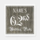 Cette conception élaborée et ornée de serviette en papier à thème d'anniversaire comporte un nom personnalisable et le message "62e fête d'anniversaire". Le grand numéro "62e" et les mots "fête d'anniversaire" sont dans un texte de style script luxueux. L'arrière - plan est décoré d'un motif d'inspiration simili/imitation bois. Des serviettes en papier de luxe comme celle-ci pourraient être utiles lors d’une fête d’anniversaire ou d’une fête pour célébrer le soixante-deuxième anniversaire de quelqu’un. [~Z0000564]