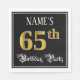Ce design de serviette de papier d'anniversaire fantaisie et orné comporte un nom personnalisé et le message "65th Birthday Party". Le grand numéro "65ème" a un motif de coloriage imitation/faux d'inspiration or, les mots "fête d'anniversaire" sont dans un texte élégant de style script, et l'arrière - plan est coloré noir par défaut (bien qu'il puisse être customisé). Des serviettes en papier luxueuses et élégantes comme celle-ci pourraient être utiles lors d’une fête d’anniversaire ou d’une fête pour célébrer le 65e anniversaire de quelqu’un. [~Z0000565]