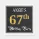 Ce design élégant et luxueux de serviette d'anniversaire présente un nom personnalisable et le message "67th Birthday Party". Le grand numéro "67th" a un motif de coloriage d'inspiration or imitation/fausse, et les mots "Birthday Party" sont dans un texte de style script sophistiqué. L'arrière - plan est coloré en noir par défaut (bien qu'il puisse être customisé). Des serviettes en papier de fantaisie comme celle-ci pourraient être utiles à une célébration d’anniversaire pour célébrer le soixante-septième anniversaire de quelqu’un. [~Z0000565]