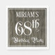 Ce design élégant et orné de la soirée d'anniversaire sur le thème de la serviette en papier comprend un nom personnalisé et le message "68th Birthday Party". Le grand numéro "68e" et les mots "fête d'anniversaire" sont dans un texte de style script sophistiqué. L'arrière - plan est décoré d'un motif d'inspiration imitation/faux grain. Des serviettes en papier luxueuses et élaborées comme celle-ci pourraient être utiles lors d’une fête d’anniversaire ou d’une fête célébrant le 68e anniversaire de quelqu’un. [~Z0000564]