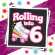 Ce design de fête de patinage est parfait pour une fête de patinage à rouleaux ou un thème d'anniversaire pour une fille de 6 ans. Si la fille d'anniversaire aime le roller skate, elle ADORE ce skate party design! Caractéristiques style rétro 'Rolling in 6' anniversaire citation avec roller cool graphique avec arc-en-ciel & étoiles qui est amusant et unique. Fun roller skate design pour le 6ème anniversaire d'une fille!