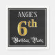 Ce luxueux et élégant design de serviette en papier sur le thème de l'anniversaire comporte un nom personnalisé et le message "6e fête d'anniversaire". Le grand numéro "6th" a un motif de coloriage d'inspiration fausse/imitation or, les mots "Birthday Party" sont dans un texte de style script sophistiqué, et l'arrière - plan est coloré noir par défaut (bien qu'il puisse être customisé). Des serviettes en papier aussi sophistiquées et opulentes pourraient être utiles lors d’une célébration d’anniversaire pour célébrer le 6e anniversaire de quelqu’un. [~Z0000565]