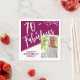 70 et fabuleux Script Photo Magenta 70th Birthday Napkins. Écriture blanche tendance et feuillage blanc avec photo personnalisée. Faites vos propres serviettes en papier pour la fête de 70e anniversaire pour elle. Customisez avec le nom et l'âge et insérez votre photo dans le modèle.