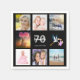 Une serviette pour une fête de 70e anniversaire, célébrant sa vie avec un collage de 8 de vos photos. Modèles pour un nom, 70 ans et une date. Date de naissance ou date de la fête. Lettres blanches et grises. Arrière - plan noir.