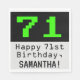 Cette serviette d'anniversaire nerdy et amusante est dotée d'un grand jeu d'ordinateur vintage vert numéro "71" sur un arrière - plan de couleur noire. Il comporte également le message de voeux d'anniversaire "Joyeux 71e anniversaire", et un nom personnalisé. Des serviettes en papier comme celle-ci pourraient être utilisées lors d'une fête organisée pour célébrer le soixante-et-onzième anniversaire d'un scientifique, d'un historien de l'informatique ou d'une personne qui aime les jeux informatiques vintages. [~Z0000404]