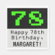 Cette conception amusante et geek anniversaire papier à thème de conception de serviette comporte un grand vert rétro de l'ordinateur style de jeu numéro "78" sur un arrière - plan de couleur noire. Il contient également le message de voeux d'anniversaire "Joyeux 78e anniversaire", ainsi qu'un nom qui peut être modifié. Des serviettes en papier amusantes comme celle-ci pourraient être utiles lors d'une fête organisée pour célébrer le soixante-dix-huitième anniversaire d'un programmeur informatique, d'un historien de l'informatique, ou d'une personne qui aime vraiment les jeux vidéo classiques. [~Z0000404]