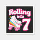 Ce design de fête de patinage est parfait pour une fête de patinage à rouleaux ou un thème d'anniversaire pour une fille de 7 ans. Si la fille d'anniversaire aime le roller skate, elle ADORE ce skate party design! Caractéristiques style rétro 'Rolling in 7' anniversaire citation avec roller cool graphique avec arc-en-ciel & étoiles qui est amusant et unique. Fun roller skate design pour le 7ème anniversaire d'une fille!