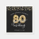 Des serviettes en papier personnalisées modernes et festives en noir et or de 80e anniversaire avec le titre 80 ANS DANS LA FABRICATION, typographie de script, numéros de faux ballon métallique en or, banderoles en or et confettis et lumières blanches avec votre texte personnalisé dans votre choix de couleur arrière - plan (montré en noir). ASSISTANCE : Pour obtenir de l'aide sur la modification ou la personnalisation de la conception, le changement de couleur, le transfert de la conception vers un autre produit ou si vous souhaitez coordonner des éléments, contactez le concepteur AVANT de commander par Zazzle Conversation ou par courriel makeitaboutyoustore@gmail.com.