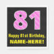 Cette conception amusante et joyeuse de serviette en papier sur le thème de l'anniversaire comporte un grand numéro "81" avec un motif à rayures rose clair et rose foncé contenant des formes cardiaques. Il comporte également le message de voeux d'anniversaire "Joyeux 81e anniversaire", et un nom modifiable. Des serviettes en papier comme celle-ci peuvent être amusantes à utiliser lors de la quatre-vingts fêtes du premier anniversaire de quelqu’un. Cela pourrait aussi être un choix amusant pour quelqu'un qui a un anniversaire qui tombe le 14 février (Saint-Valentin), en raison de ses symboles et couleurs de coeur aimés. [~Z0000436]