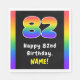 Ce design de serviette en papier d'anniversaire dynamique et joyeux comporte un grand nombre de "82" avec un motif multicolore de spectre arc-en-ciel inspiré dégradé, avec le message "Happy 82nd Birthday," et un nom de destinataire personnalisé. Des serviettes en papier sur le thème de l’anniversaire, comme celles-ci, pourraient être utilisées lors d’une fête d’anniversaire célébrant le quatre-vingt-deuxième anniversaire de quelqu’un. [~Z0000629]