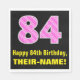 Ce design joyeux et amusant de serviette en papier à thème d'anniversaire comporte un grand numéro "84" avec un motif rayé contenant des formes cardiaques coloré rose clair et rose foncé. Il comporte également le message de voeux d'anniversaire "Joyeux 84e anniversaire", et un nom modifiable. Des serviettes en papier comme celle-ci peuvent être amusantes à utiliser à la fête du 84e anniversaire de quelqu’un ou à la célébration. Cela pourrait aussi être un choix amusant pour quelqu'un dont l'anniversaire tombe le jour de la Saint-Valentin (14 février), en raison de ses symboles et couleurs de coeur affectueux. [~Z0000436]