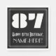 Cette apparence vintage Roaring Twenties s'inspire du design de serviette de papier d'anniversaire avec un grand style art déco inspiré numéro "87", le message "Happy 87th Birthday", un nom modifiable, et un motif de bordure composé de lignes fines. Des serviettes en papier personnalisables et amusantes, comme celle-ci, pourraient être utilisées à la fête du 87e anniversaire de quelqu’un. [~Z0000494]