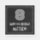 Cette serviette en papier inspirée du style des années 1920/1930 présente un grand look Art déco inspiré du numéro "8", le message "HAPPY 8th BIRTHDAY", un nom modifiable, et un motif frontalier composé de lignes. Des serviettes en papier sur le thème de l’anniversaire, amusantes et personnalisables, comme celle-ci, pourraient être utilisées à la fête du 8e anniversaire de quelqu’un. [~Z0000395]