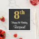 Ce design luxueux, sophistiqué et élégant de serviette d'anniversaire comporte un grand numéro ordinal "8th" ayant une imitation/fausse apparence or, plus le message de voeux d'anniversaire "Happy 8th Birthday," et un nom personnalisé dans une police de style script. L'arrière - plan est noir de couleur. Des serviettes en papier comme celle-ci peuvent être utilisées pour célébrer le huitième anniversaire de quelqu’un. [~Z0000516]