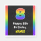 Cette conception amusante et joyeuse de serviette en papier d'anniversaire comprend le numéro "8" avec un motif multicolore inspiré du spectre arc-en-ciel, ainsi que le message "Happy 8th Birthday," et un nom de destinataire modifiable. Des serviettes en papier sur le thème de l’anniversaire, comme celles-ci, pourraient être utilisées lors d’une fête d’anniversaire pour célébrer le 8e anniversaire de quelqu’un. [~Z0000629]