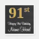 Serviette En Papier 91e anniversaire ~ Elégant Luxueux Faux Gold Look