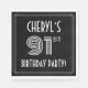 Ce design élégant des années 1920-1930 a inspiré quatre-vingt-onze ans de design de serviette de table de fête et de célébration, avec un nom personnalisé, un style art déco complexe inspiré du numéro "91st", le message "BIRTHDAY PARTY !", et un motif frontalier composé de lignes. Par défaut, il dispose d'un arrière - plan de couleur noire, mais il peut être customisé à une couleur différente, si vous le souhaitez. Des serviettes en papier à thème d’anniversaire comme celles-ci pourraient être utilisées lors d’une fête d’anniversaire pour célébrer le 91e anniversaire de quelqu’un. [~Z0000616]
