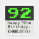 Cette serviette en papier à thème d'anniversaire nerveux et geeky est dotée d'un grand numéro vert classique de jeu d'ordinateur "92" sur un arrière - plan de couleur noire. Il comporte également le message de voeux d'anniversaire "Joyeux 92e anniversaire", et un nom modifiable. Des serviettes en papier comme celle-ci peuvent être utiles lors d'une fête organisée pour célébrer le 92ème anniversaire d'un programmeur d'ordinateur, d'un scientifique ou d'une personne qui aime vraiment les jeux vidéo rétro. [~Z0000404]