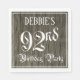Ce design luxueux et orné de serviette en papier sur le thème de l'anniversaire comporte un nom personnalisé et le message "92e anniversaire fête". Le grand numéro "92nd" et les mots "Birthday Party" sont dans un texte de style script sophistiqué, et l'arrière - plan présente un motif imitation/imitation bois inspirée du grain. Des serviettes en papier aussi sophistiquées pourraient être utiles lors d’une fête d’anniversaire ou d’une célébration pour célébrer le quatre-vingt-dix-deuxième anniversaire de quelqu’un. [~Z0000564]