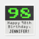 Ce design de serviette en papier à thème d'anniversaire nerveux et amusant comprend un grand jeu vidéo vintage vert numéro "98" sur un arrière - plan de couleur noire. Il comporte également le message de voeux d'anniversaire "Joyeux 98e anniversaire", et un nom qui peut être personnalisé. Des serviettes en papier amusantes et sales comme celle-ci pourraient être utiles lors d'une fête organisée pour célébrer le 98e anniversaire d'un scientifique, d'un ingénieur ou d'une personne qui aime vraiment les jeux rétro-informatiques. [~Z0000404]