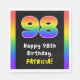 Ce design de serviette en papier à thème d'anniversaire optimisé et dynamique comprend un grand nombre de "98" avec un motif coloré à spectre arc-en-ciel inspiré du gradient, ainsi que le message "Happy 98th Birthday," et un nom de destinataire personnalisable. Des serviettes en papier sur le thème de l'anniversaire comme celle-ci peuvent être amusantes à utiliser lors d'une fête d'anniversaire pour quelqu'un qui célèbre son 98e anniversaire. [~Z0000629]