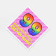 Ce modèle de serviette en papier à thème de 99e anniversaire heureux et joyeux comporte un grand nombre de "99" ayant un motif coloré à l'arc-en-ciel inspiré du spectre dégradé. Il comporte également le message "Happy 99th Birthday," et un nom personnalisable. L'arrière - plan est décoré d'un joyeux motif aux rayures rose clair et rose foncé, aux coeurs roses aimés. Des serviettes en papier customisées et amusantes comme celle-ci pourraient être utilisées lors d’une célébration d’anniversaire en l’honneur du quatre-vingt-dix-neuvième anniversaire de quelqu’un. [~Z0000417]