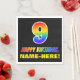 Cette serviette en papier colorée, amusante et joyeuse à thème d'anniversaire comporte un grand nombre de "9" et le message "HAPPY BANTHDAY", tous deux ayant un dégradé arc-en-ciel de couleur motif inspiré, ainsi qu'un nom de destinataire modifiable jaune gras. L'arrière - plan est noir de couleur. Des serviettes en papier sur le thème de l’anniversaire comme celle-ci pourraient être utilisées pour célébrer le 9e anniversaire de quelqu’un. [~Z0000476]