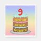 Cette serviette en papier sur le thème de l'anniversaire, à la fois optimisée et joyeuse, présente une représentation de dessin animé d'un gâteau d'anniversaire à trois étages avec une bougie en forme de chiffre sur le dessus indiquant le numéro "9", ainsi que le message "HAPPY 9TH BIRTHDAY", et un nom de destinataire personnalisable. L'arrière - plan a un motif multicolore pastel arc-en-ciel inspiré du spectre dégradé. Des serviettes colorées sur le thème de l'anniversaire comme celles-ci pourraient être utilisées à une fête pour quelqu'un qui célèbre son neuvième anniversaire. [~Z0000623]