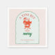 This design features Christmas cocktail theme party "A Tini Bit Merry" with a martini glass and a Santa sitting on it.