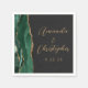 Serviette En Papier Agate Emerald Green Gold Script Mariage foncé