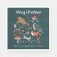 Une serviette verte ornée d'une jolie forêt nostalgique vintage illustration de Noël classique traditionnelle avec des animaux de la forêt boisée dans la nature. OEuvre originale de Caroline Bonne Müller