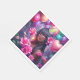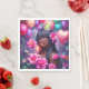 Des serviettes en papier d'anniversaire de belle fille. Des graphismes mignons d'une belle fille anime avec une peau plus foncée et les yeux et les cheveux pourpres entourés de ballons et de fleurs roses. Elles sont mignonnes pour une fille ado ou pré-ado.